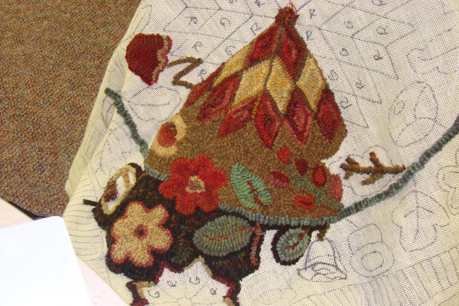 Marie choose a single paisley. She too did LOTS of hooking and stayed late with us at night. Much happens AFTER class is over and we hook till late evening. :)