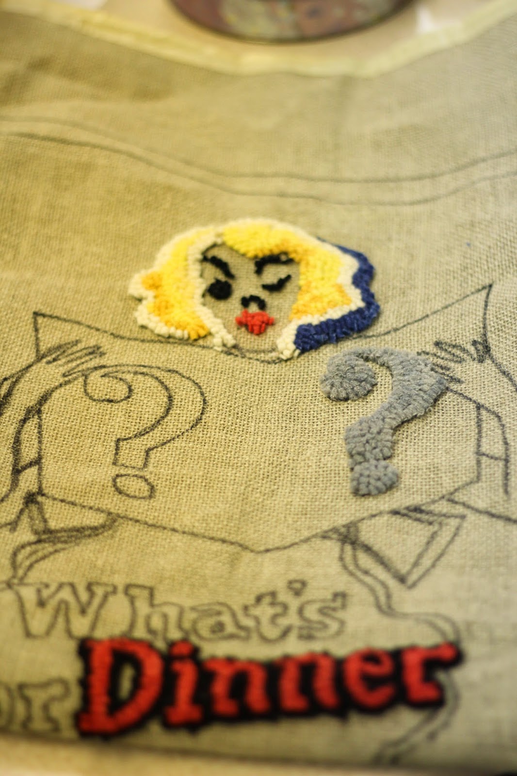 JoAnn is hooking a replica of a cookbook her mother has. Believe it was in the 1940's